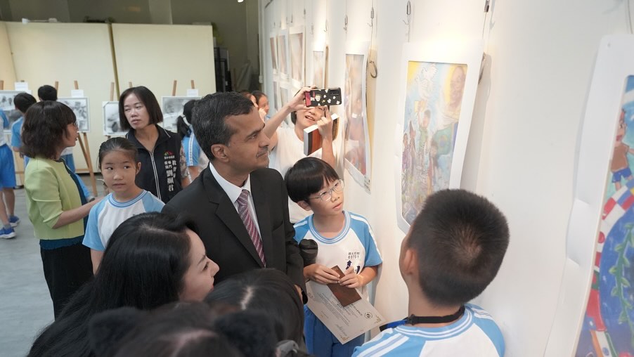 The India Taipei Association, in collaboration with Da-Tung Elementary School in Taichung, organized the “Gandhi’s Painting Competition for children” under the theme “Coexisting in Harmony.” All 920 students participated with 173 final submissions. The judges selected three top winners and 40 outstanding works, with an award ceremony held on October 14.